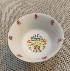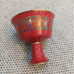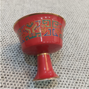 成化斗彩紅釉描金书字高足杯