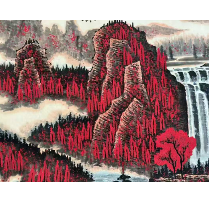 **李可染《万山红遍》**值得收藏,因其代表了中国近现代山水画的革新巅峰,以朱砂重彩与逆光技法重塑传统水墨,将毛泽东诗词的壮阔意境转化为视觉史诗。此系列作品创作于1960年代,仅存7幅,每幅构图皆以“积墨法”层层渲染出红霞漫山的恢弘气象,既延续了宋画“千里江山”的格局,又赋予革命浪漫主义的时代精神,兼具艺术史里程碑意义与市场稀缺性,是红色经典艺术中兼具学术价值与资本价值的标杆之作。