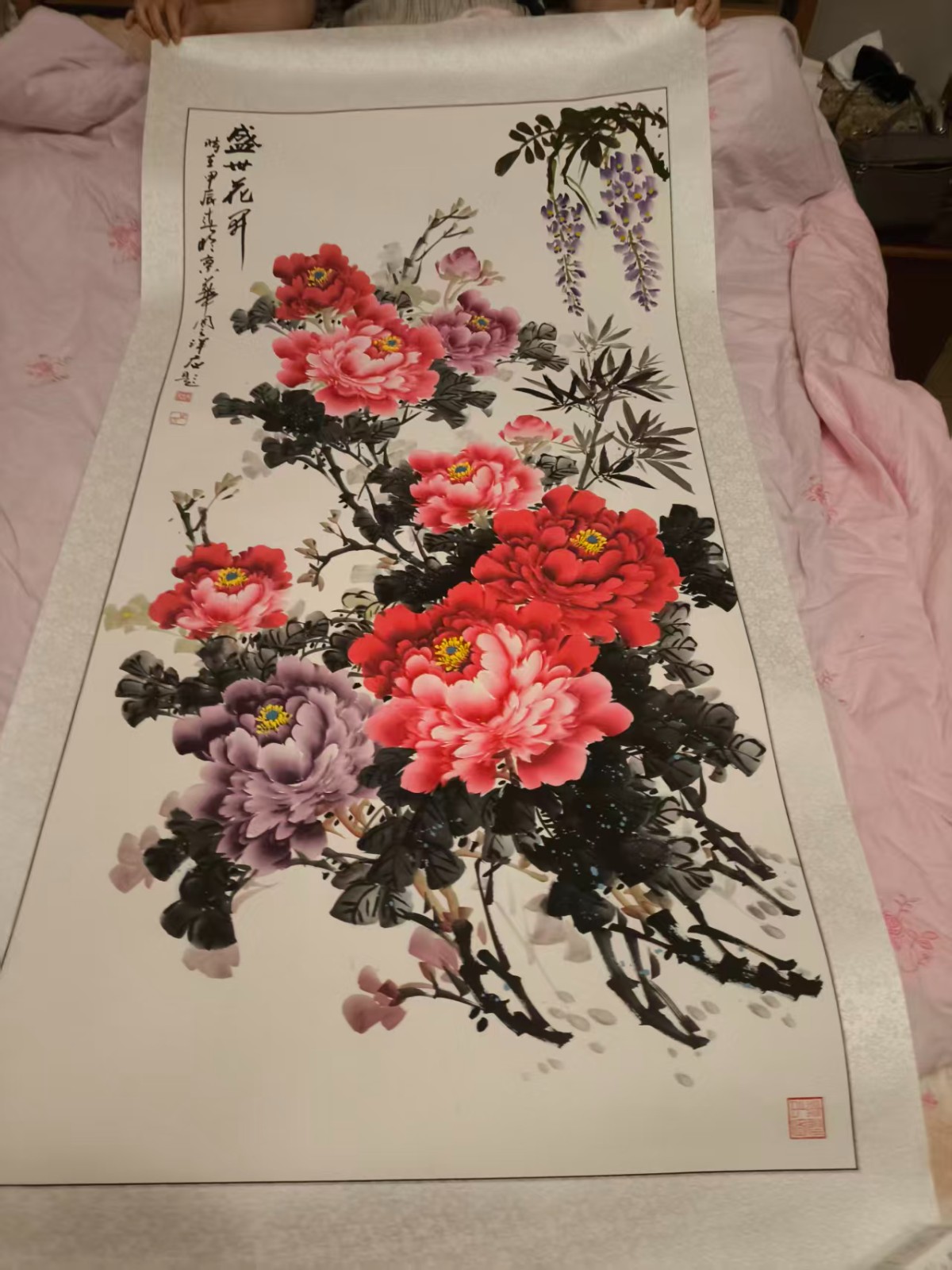 周之洋牡丹图《盛世花开》值得收藏,核心在于其“题材寓意、画家功底与时代价值”的三重稀缺叠加——周之洋作为当代画牡丹的名家,尤擅以工兼写手法表现牡丹,此作中牡丹花瓣层叠丰腴、色彩浓艳华贵却不艳俗,枝干苍劲、花蕊精巧,将“盛世花开”所蕴含的吉祥富贵、国泰民安的时代寓意,通过精湛画技完美呈现;其作品既传承了传统工笔牡丹的细腻雅致,又融入现代审美意趣,多次入选国家级美术展览,且《盛世花开》作为其代表性题材的精品力作,兼具“名家代表作”的艺术高度、“吉祥题材”的大众认可度与“时代印记”的独特价值,是当代花鸟画画作中兼具观赏、投资与传承意义的收藏佳品。