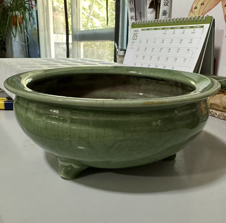 龙泉窑青釉三足大香炉