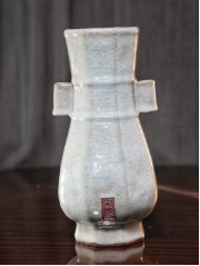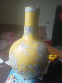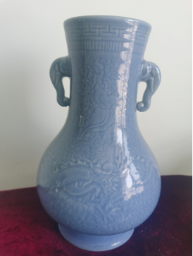 乾隆年制蓝釉花卉缠枝腾龙纹双耳尊