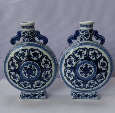 青花八宝纹抱月瓶一对